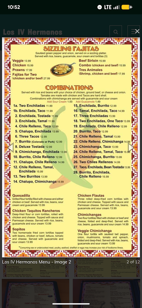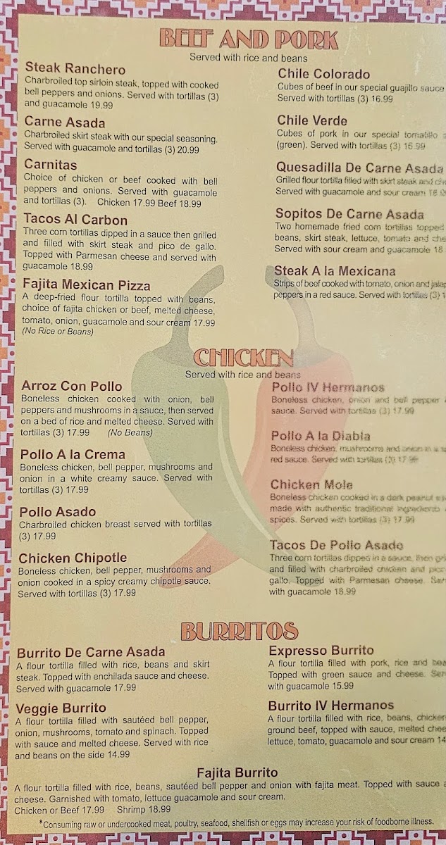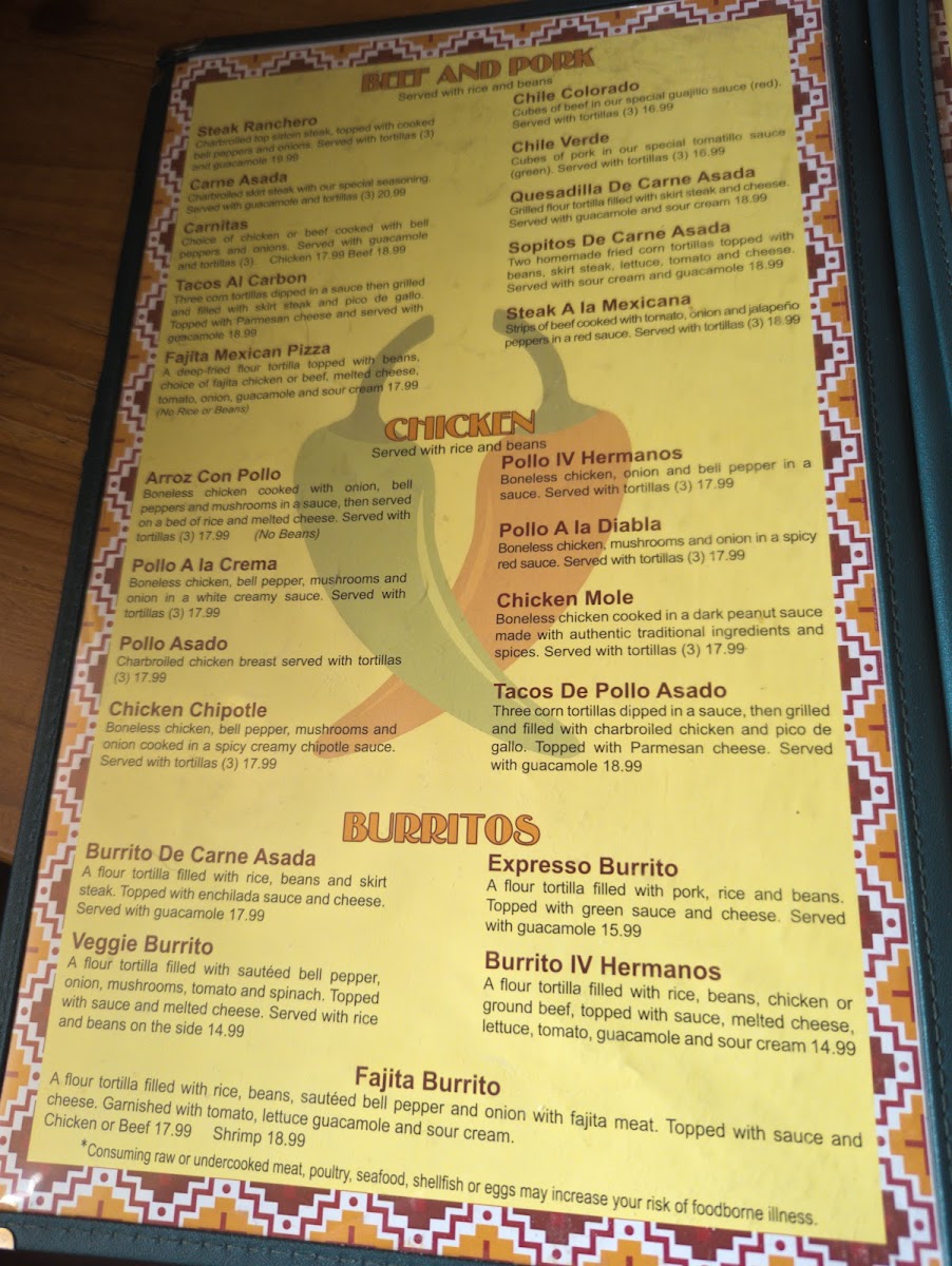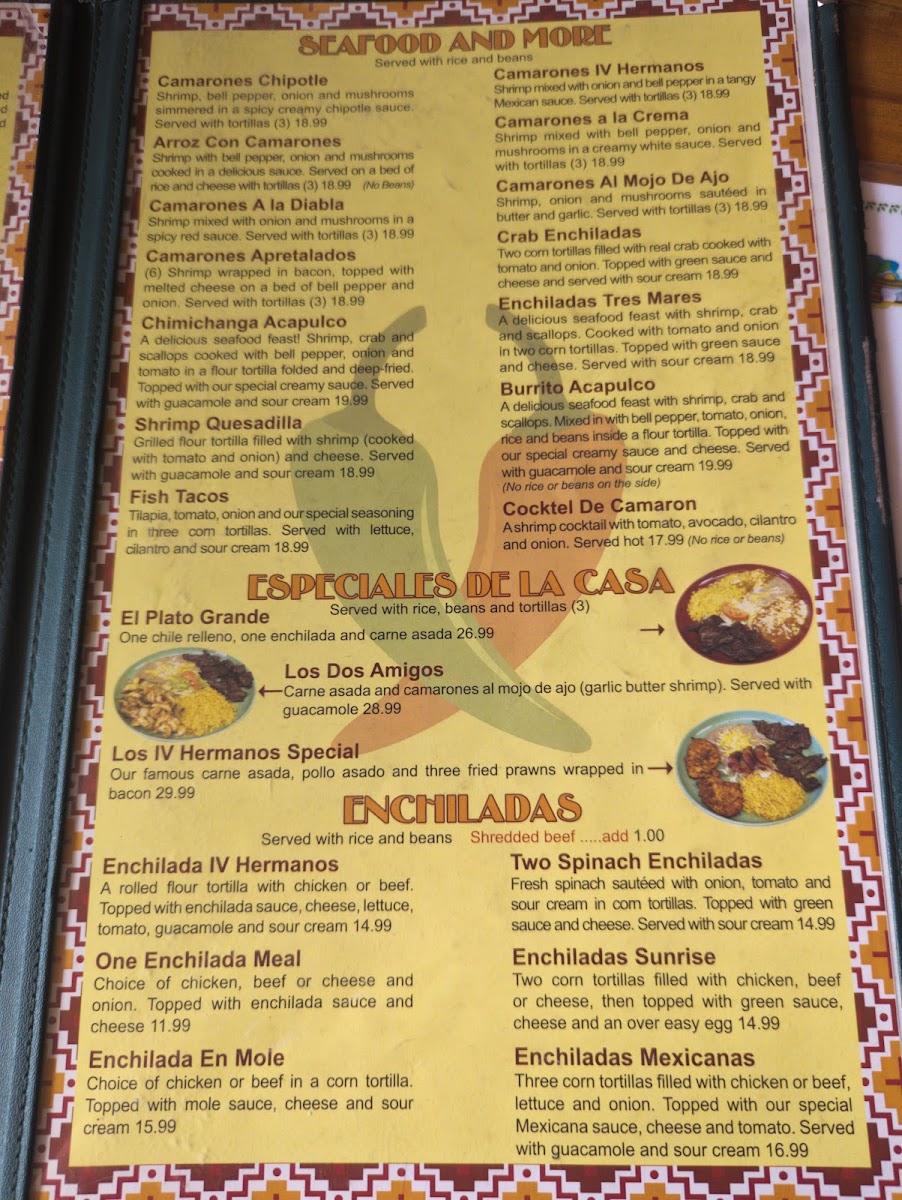 Los IV Hermanos Menu